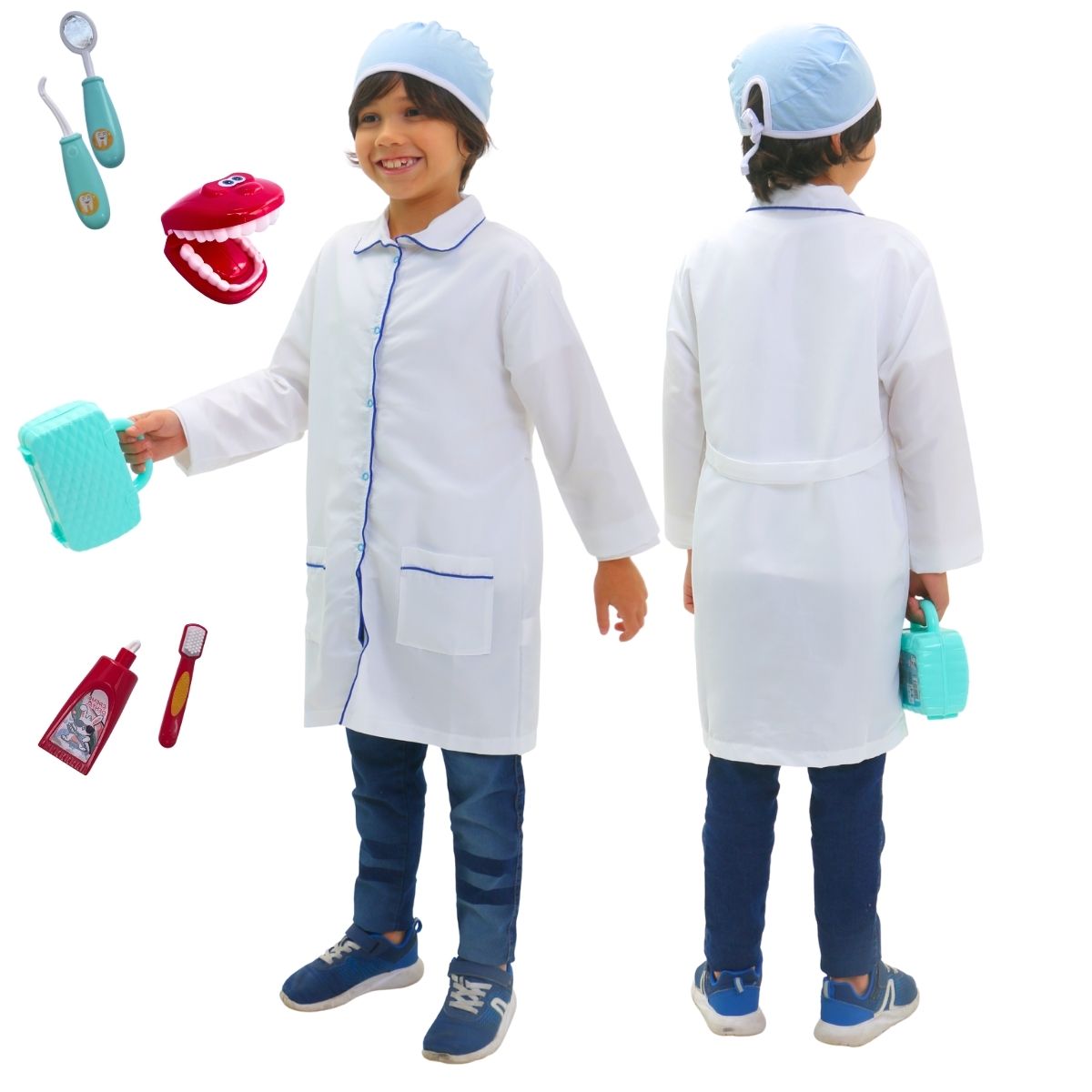 Fantasia DENTISTA Infantil AZUL | jaleco touca BRINDE MALETA