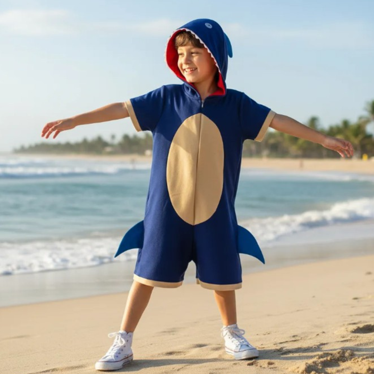 Brincar de tubarão é explorar o oceano da imaginação. Cada detalhe dessa fantasia transforma a criança em protagonista de aventuras marinhas cheias de diversão. Entre mergulhos imaginários e muitas brincadeiras, a fantasia desperta sorrisos, criatividade e momentos inesquecíveis que tornam a infância ainda mais especial.
