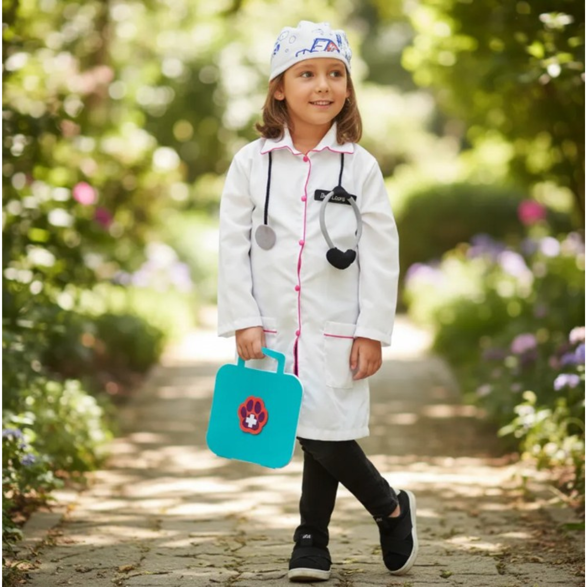 Brincar de veterinária é mergulhar em um universo de cuidado, imaginação e descobertas. Cada detalhe da fantasia convida a criança a criar histórias, cuidar dos seus bichinhos e viver momentos cheios de alegria. Uma brincadeira que estimula empatia, criatividade e transforma o dia a dia em experiências especiais.