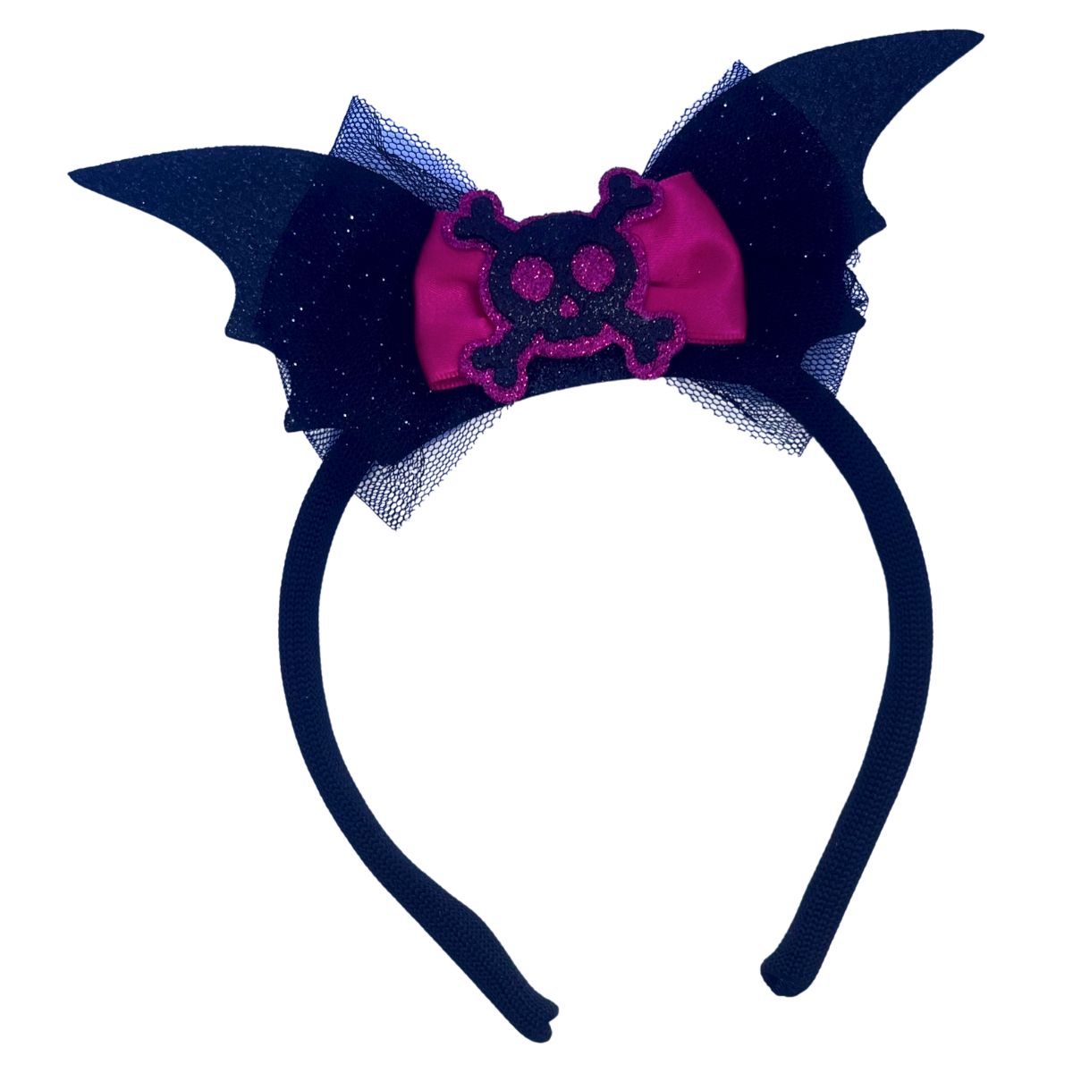 Tiara de plástico de morcego com detalhe pink e aplique em EVA